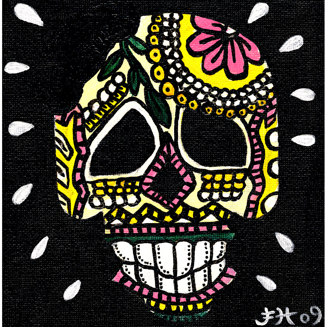 Petite peinture de vanité à la manière de celles du Mexique, pour la fête des morts . Ici évocation du costume d'un toréador.